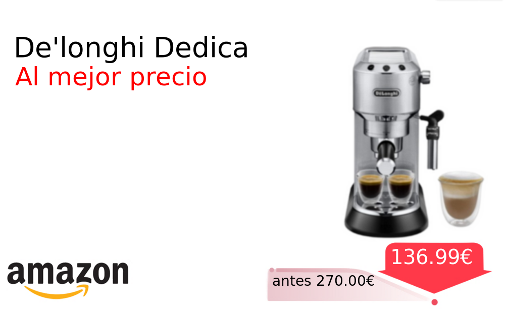 Preciazo de oferta De'longhi Dedica❗️🆕 #Amazon 🇪🇸 📛Precio Ya 136.99€❗️ (PVP: +270.00€) ✨No hay nada como un buen café para empezar el día. De'longhi Dedica es una con caldera de acero inoxidable y la máxica calidad donde podremos elegir el café molido o monodosis. cholloya.com/DEDICA