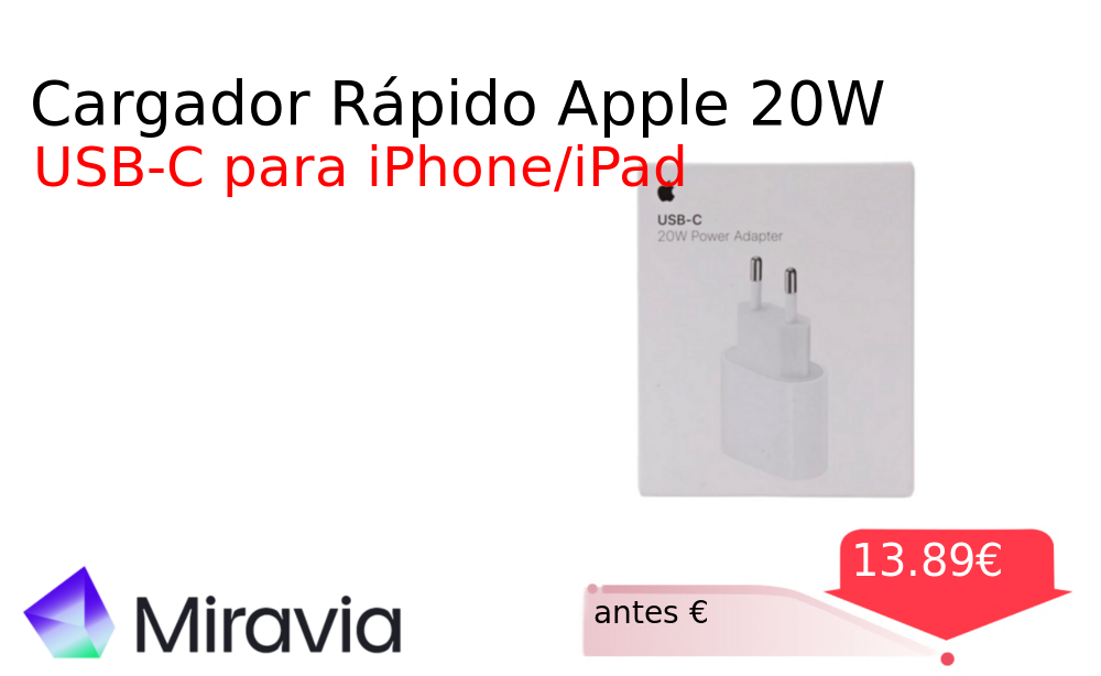 Buen Precio✨ Cargador Rápido Apple 20W❗️🆕 #Miravia 📛Precio Ya 13.89€❗️ (PVP: +€) ✨Cargador oficial Apple con tecnología USB-C Ofrece carga rápida y segura para tu iPhone o iPad Pro Diseño compacto y fiable. cholloya.com/APPLE_20W_USBC
