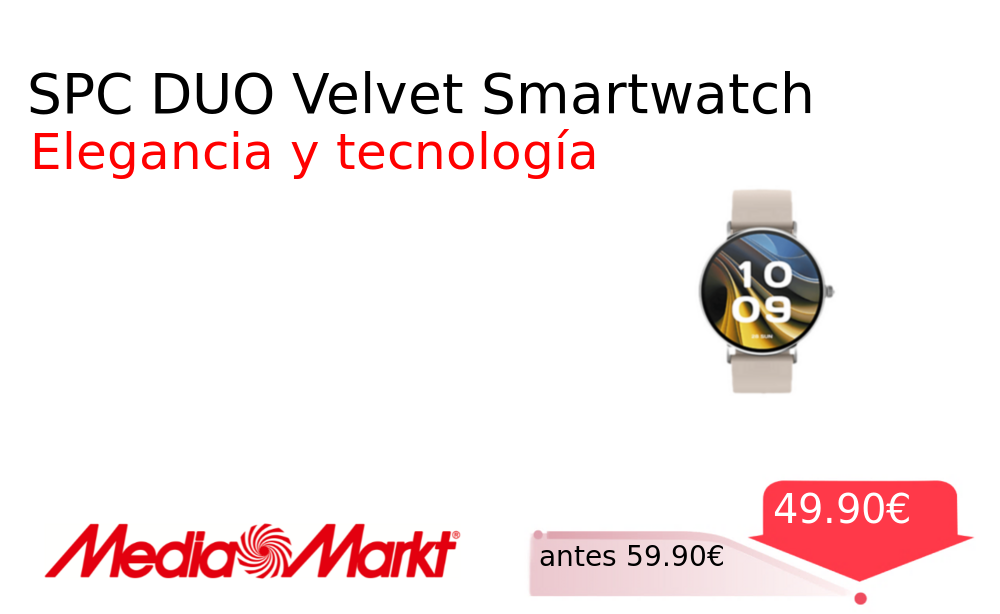 Buen Precio✨ SPC DUO Velvet Smartwatch❗️🆕 #MediaMarkt 📛Precio Ya 49.90€❗️ (PVP: +59.90€) ✨Smartwatch circular con pantalla AMOLED de 1 32 pulgadas y autonomía de siete días Resistente al agua IP68 carga inalámbrica y seguimiento para más. cholloya.com/SPC_DUO_VELVET