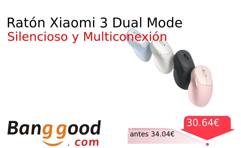 Buen Precio✨ Ratón Xiaomi 3 Dual Mode❗️🆕 BangGood 📛Precio Ya 30.64€❗️ (PVP: +34.04€) ✨Ratón inalámbrico Xiaomi con triple conectividad Bluetooth y receptor 2 4GHz Sensor de alta precisión 1200 DPI y diseño ergonómico para uso silencioso. cholloya.com/RATON_XIAOMI_3