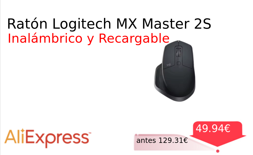 Mitad de precio✂️ Ratón Logitech MX Master 2S❗️🆕 #AliExpress 📛Precio Ya 49.94€❗️ (PVP: +129.31€) ✨Ratón inalámbrico recargable con conectividad Bluetooth para oficina Diseño ergonómico y preciso compatible con iPad y ordenadores portátiles para una productividad fluida. cholloya.com/MX_MASTER2S