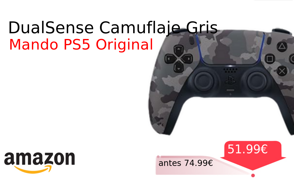 Más de un 30% 🚀 DualSense Camuflaje Gris❗️🆕 #Amazon 🇪🇸 📛Precio Ya 51.99€❗️ (PVP: +74.99€) ✨Mando original para PS5 con retroalimentación háptica avanzada y gatillos adaptativos Diseño exclusivo en camuflaje gris para una experiencia de juego inmersiva y personal. cholloya.com/DUAL_SENSE_CAMO
