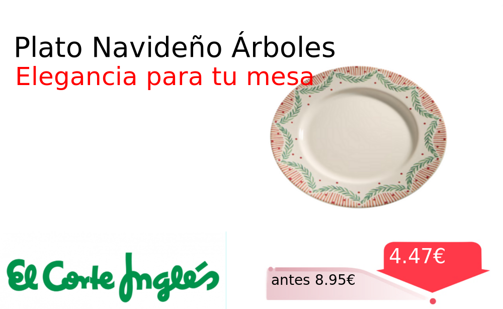 Mitad de precio✂️ Plato Navideño Árboles❗️🆕 #Elcorteingles 📛Precio Ya 4.47€❗️ (PVP: +8.95€) ✨Plato llano decorado con elegantes árboles de Navidad Ideal para dar un toque festivo y acogedor a tu mesa durante las celebraciones familiares. cholloya.com/PLATO_NAVIDAD