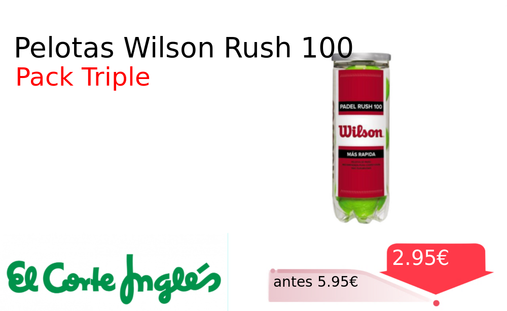 Mitad de precio✂️ Pelotas Wilson Rush 100❗️🆕 #Elcorteingles 📛Precio Ya 2.95€❗️ (PVP: +5.95€) ✨Pelotas oficiales Wilson para partidos de pádel Ofrecen un bote consistente y una gran durabilidad en cualquier superficie de juego Ideal para entrenamientos. cholloya.com/WILSON_RUSH_100