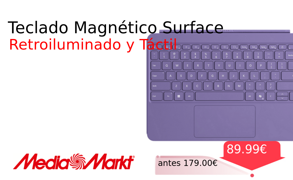 40% 📉 Vaya descuentazo‼‼ Teclado Magnético Surface❗️🆕 #MediaMarkt 📛Precio Ya 89.99€❗️ (PVP: +179.00€) ✨Teclado magnético retroiluminado para Surface Pro 12 Panel táctil de precisión espacioso y teclas especiales dedicadas para una escritura cómoda y productiva. cholloya.com/MICROSOFT_TECLA