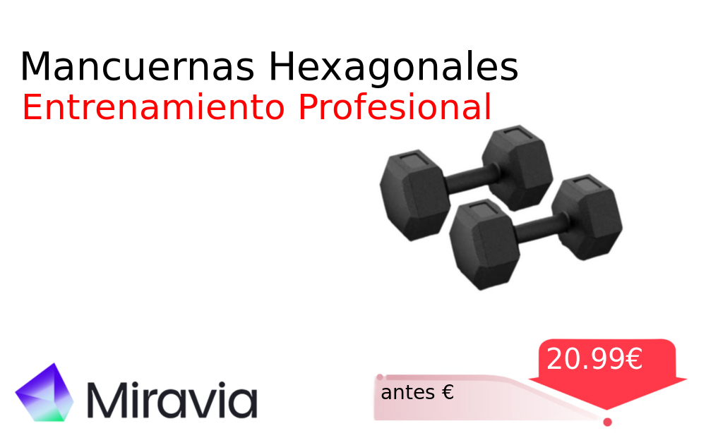 Buen Precio✨ Mancuernas Hexagonales❗️🆕 #Miravia 📛Precio Ya 20.99€❗️ (PVP: +€) ✨Mancuernas hexagonales con recubrimiento de vinilo antideslizante Juego de dos unidades ideales para entrenamiento de fuerza y tonificación muscular en casa o gimnasio. cholloya.com/ALLINLIFE_MANCU