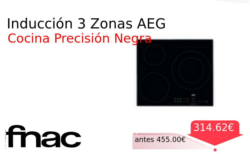 Más de un 30% 🚀 Inducción 3 Zonas AEG❗️🆕 #fnac 📛Precio Ya 314.62€❗️ (PVP: +455.00€) ✨Placa de inducción AEG con tres zonas de cocción diseño negro de 60 cm Tecnología eficiente para cocinar con precisión y facilidad de limpieza. cholloya.com/AEG_ILB63306FB