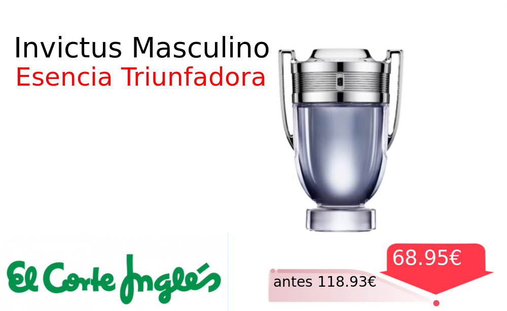 40% 📉 Vaya descuentazo‼‼ Invictus Masculino❗️🆕 #Elcorteingles 📛Precio Ya 68.95€❗️ (PVP: +118.93€) ✨Fragancia masculina con esencia audaz y victoriosa Notas amaderadas y marinas que proyectan confianza Ideal para el hombre moderno que busca destacar con elegancia. cholloya.com/RABANNE_INVICTU