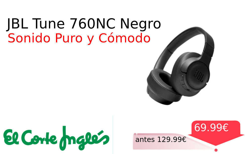 40% 📉 Vaya descuentazo‼‼ JBL Tune 760NC Negro❗️🆕 #Elcorteingles 📛Precio Ya 69.99€❗️ (PVP: +129.99€) ✨Auriculares JBL con tecnología de cancelación activa de ruido para una inmersión sonora total Diseño diadema cómodo y conexión Bluetooth estable. cholloya.com/JBL_T760NC_NEGR