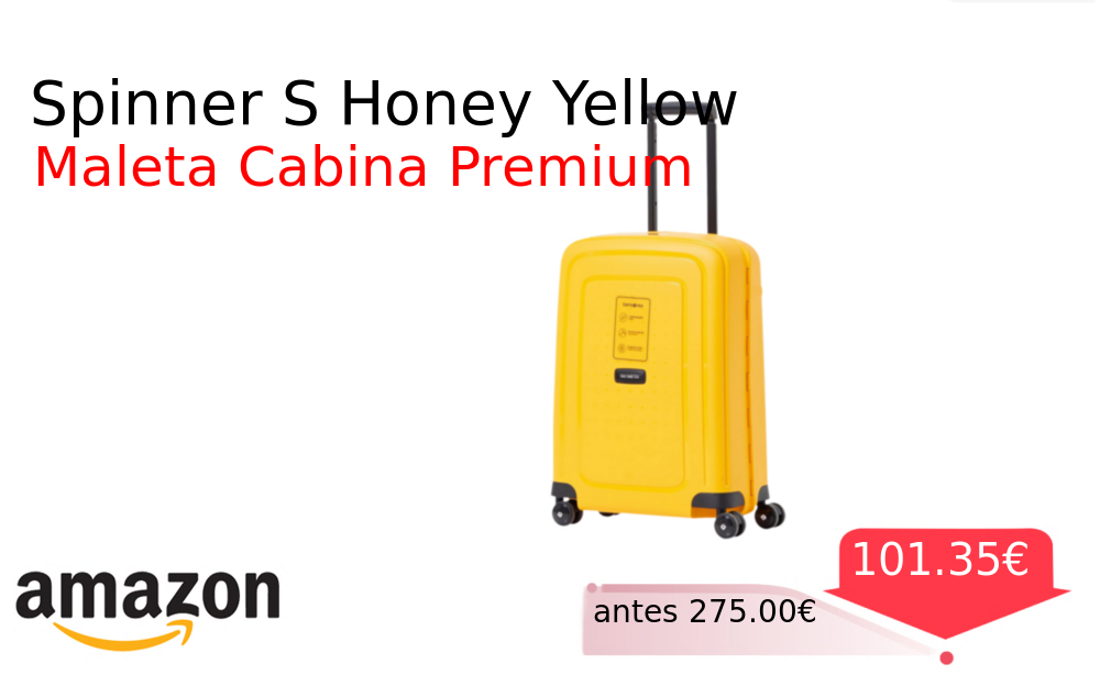 Mitad de precio✂️ Spinner S Honey Yellow❗️🆕 #Amazon 🇪🇸 📛Precio Ya 101.35€❗️ (PVP: +275.00€) ✨Maleta de cabina Samsonite S'Cure Spinner con ruedas multidireccionales Fabricación robusta en color amarillo miel capacidad treinta y cuatro litros para viajes cómodos. cholloya.com/SAMSONITE_SPINN