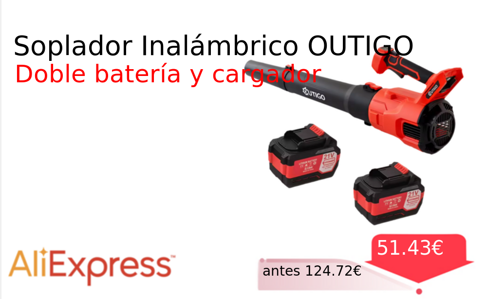 Mitad de precio✂️ Soplador Inalámbrico OUTIGO❗️🆕 #AliExpress 📛Precio Ya 51.43€❗️ (PVP: +124.72€) ✨Soplador inalámbrico con dos baterías de larga duración y cargador incluido Potente para limpiar hojas nieve y polvo en exteriores fácilmente. cholloya.com/SOPLADOR_OUTIGO