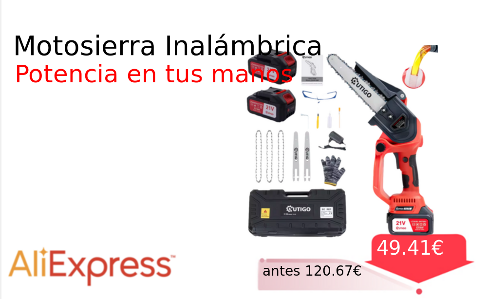 Mitad de precio✂️ Motosierra Inalámbrica❗️🆕 #AliExpress 📛Precio Ya 49.41€❗️ (PVP: +120.67€) ✨Herramienta eléctrica portátil con batería de larga duración incluye cadenas de repuesto y barras guía Ideal para trabajos de jardinería y poda. cholloya.com/MOTOSIERRA_OUTI