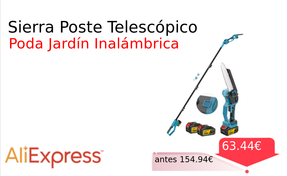 Mitad de precio✂️ Sierra Poste Telescópico❗️🆕 #AliExpress 📛Precio Ya 63.44€❗️ (PVP: +154.94€) ✨Motosierra eléctrica inalámbrica con poste telescópico para poda de jardín Funciona con baterías Makita de 18V diseño sin escobillas y soporte alto para trabajos. cholloya.com/MOTOSIERRA_TELE