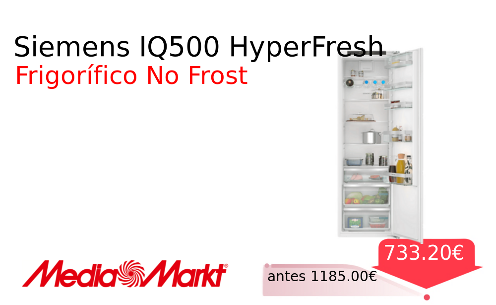 Más de un 30% 🚀 Siemens IQ500 HyperFresh❗️🆕 #MediaMarkt 📛Precio Ya 733.20€❗️ (PVP: +1185.00€) ✨Frigorífico Siemens IQ500 No Frost con tecnología hyperFresh Espacioso diseño de una puerta funcional y revisado con ligeros defectos estéticos sin afectar rendimiento. cholloya.com/SIEMENS_KI81RAD