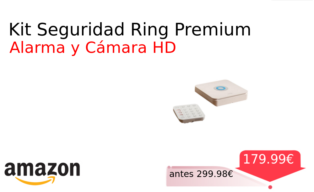 Más de un 30% 🚀 Kit Seguridad Ring Premium❗️🆕 #Amazon 🇪🇸 📛Precio Ya 179.99€❗️ (PVP: +299.98€) ✨Sistema de seguridad completo con alarma y cámara interior de alta definición para proteger tu hogar las veinticuatro horas con diseno innovador y funcional. cholloya.com/RING_ALARM_KIT