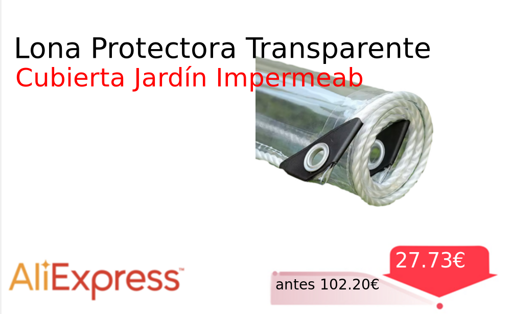 Mitad de precio✂️ Lona Protectora Transparente❗️🆕 #AliExpress 📛Precio Ya 27.73€❗️ (PVP: +102.20€) ✨Lona transparente impermeable con ojales metálicos protección duradera contra lluvia y sol Ideal para muebles exteriores fácil instalación y almacenamiento compacto. cholloya.com/LONA_PVC_OJALES