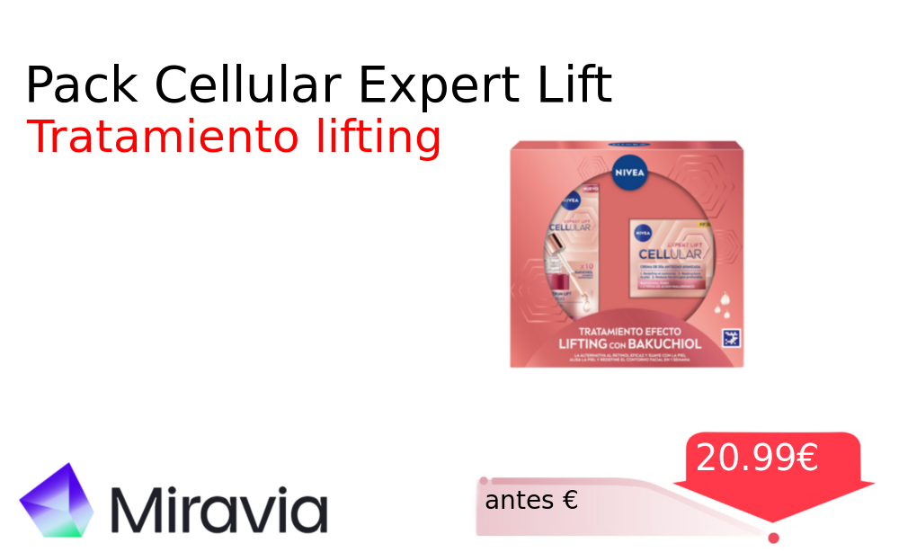 Buen Precio✨ Pack Cellular Expert Lift❗️🆕 #Miravia 📛Precio Ya 20.99€❗️ (PVP: +€) ✨Pack regalo con sérum facial y crema de día con protección solar Tratamiento completo efecto lifting con bakuchiol para rostro cuello y escote. cholloya.com/NIVEA_CELULAR_L