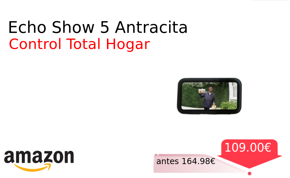 Más de un 30% 🚀 Echo Show 5 Antracita❗️🆕 #Amazon 🇪🇸 📛Precio Ya 109.00€❗️ (PVP: +164.98€) ✨Pantalla inteligente con Alexa para controlar tu hogar digital mediante comandos de voz y visualizar contenido multimedia fácilmente con tecnologia de imagen avanzada. cholloya.com/ECHO_SHOW_5