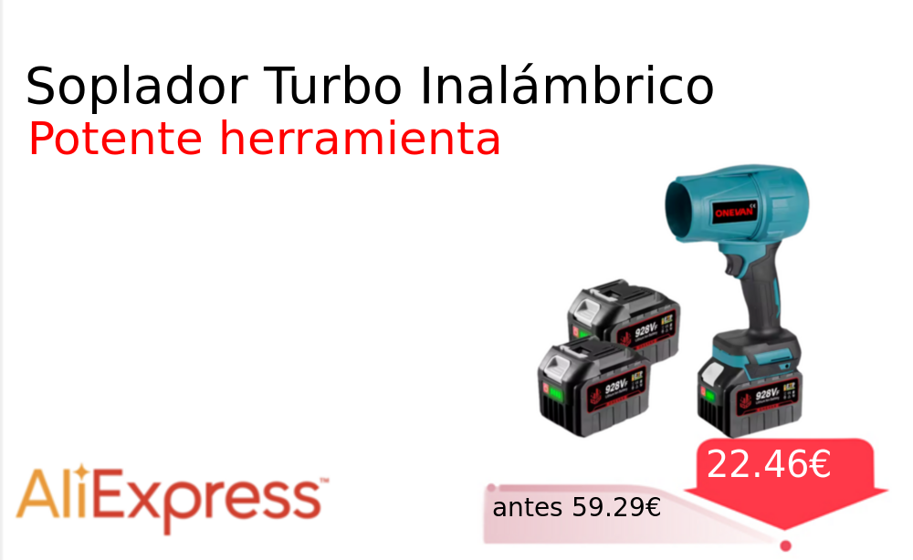 Mitad de precio✂️ Soplador Turbo Inalámbrico❗️🆕 #AliExpress 📛Precio Ya 22.46€❗️ (PVP: +59.29€) ✨Ventilador turbo eléctrico sin escobillas con potencia 2000W y velocidad de aire 200M S Ideal para eliminar polvo hojas y nieve de forma eficiente. cholloya.com/ONEVAN_TURBO_20