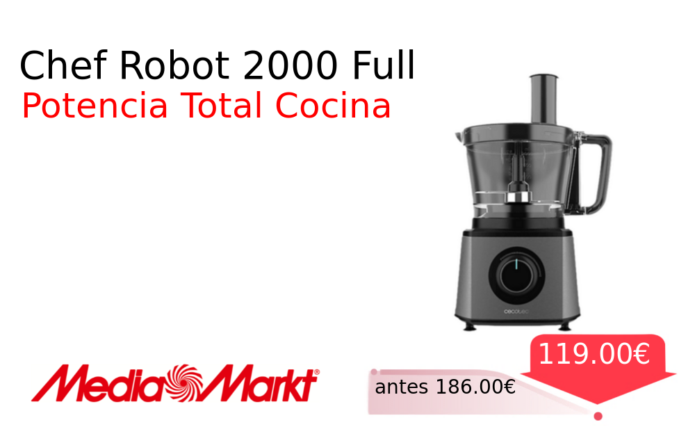 Más de un 30% 🚀 Chef Robot 2000 Full❗️🆕 #MediaMarkt 📛Precio Ya 119.00€❗️ (PVP: +186.00€) ✨Robot de cocina Cecotec con motor de 2000 W para preparaciones rápidas y versátiles Capacidad 1 8 litros en color negro elegante. cholloya.com/CECOTEC_PAPRIKA