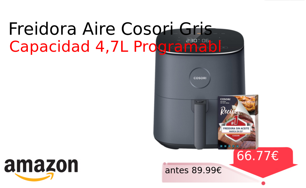 Buen Precio✨ Freidora Aire Cosori Gris❗️🆕 #Amazon 🇪🇸 📛Precio Ya 66.77€❗️ (PVP: +89.99€) ✨Freidora de aire Cosori con capacidad 4 7 litros y temperatura máxima 230 C Incluye más de treinta recetas en español y nueve programas. cholloya.com/COSORI_FREIDORA