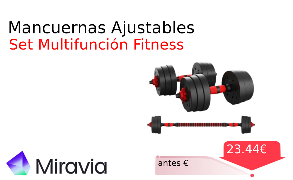 Buen Precio✨ Mancuernas Ajustables❗️🆕 #Miravia 📛Precio Ya 23.44€❗️ (PVP: +€) ✨Juego de mancuernas ajustables multifunción con barras incluidas Permite entrenamiento versátil desde 10kg hasta 50kg Incluye opción kettlebell para ejercicios completos de fuerza. cholloya.com/ALLINLIFE_MANCU