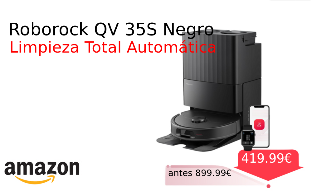 Mitad de precio✂️ Roborock QV 35S Negro❗️🆕 #Amazon 🇪🇸 📛Precio Ya 419.99€❗️ (PVP: +899.99€) ✨Robot aspirador con potente succión HyperForce y base multifuncional Incluye cepillos antienredos y mopas giratorias con elevación automática para limpieza completa. cholloya.com/ROBOROCK_QV35S