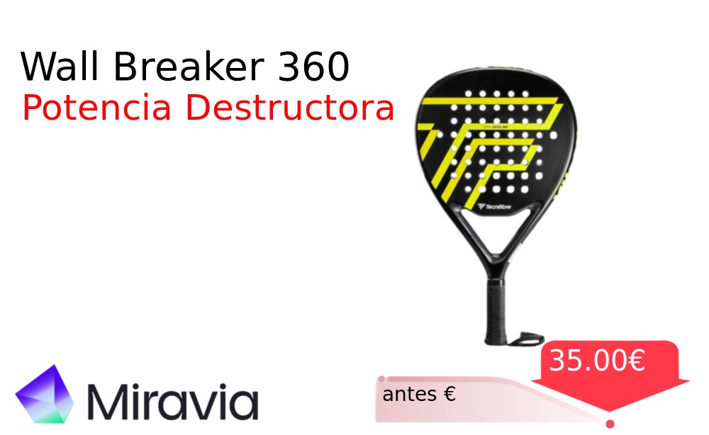 Buen Precio✨ Wall Breaker 360❗️🆕 #Miravia 📛Precio Ya 35.00€❗️ (PVP: +€) ✨Pala de pádel Tecnifibre con tecnología Wall Breaker 360 para máxima potencia Diseño en amarillo y negro con excelente control y equilibrio en cada. cholloya.com/TECNIFIBRE_WALL