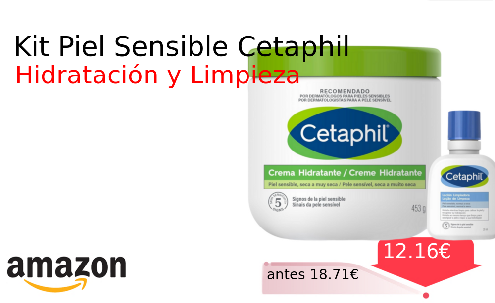 Más de un 30% 🚀 Kit Piel Sensible Cetaphil❗️🆕 #Amazon 🇪🇸 📛Precio Ya 12.16€❗️ (PVP: +18.71€) ✨Set completo para piel sensible con crema hidratante de larga duración y loción limpiadora suave Cuidado dermatológico diario que respeta tu piel delicada. cholloya.com/CETAPHIL_PIEL_S