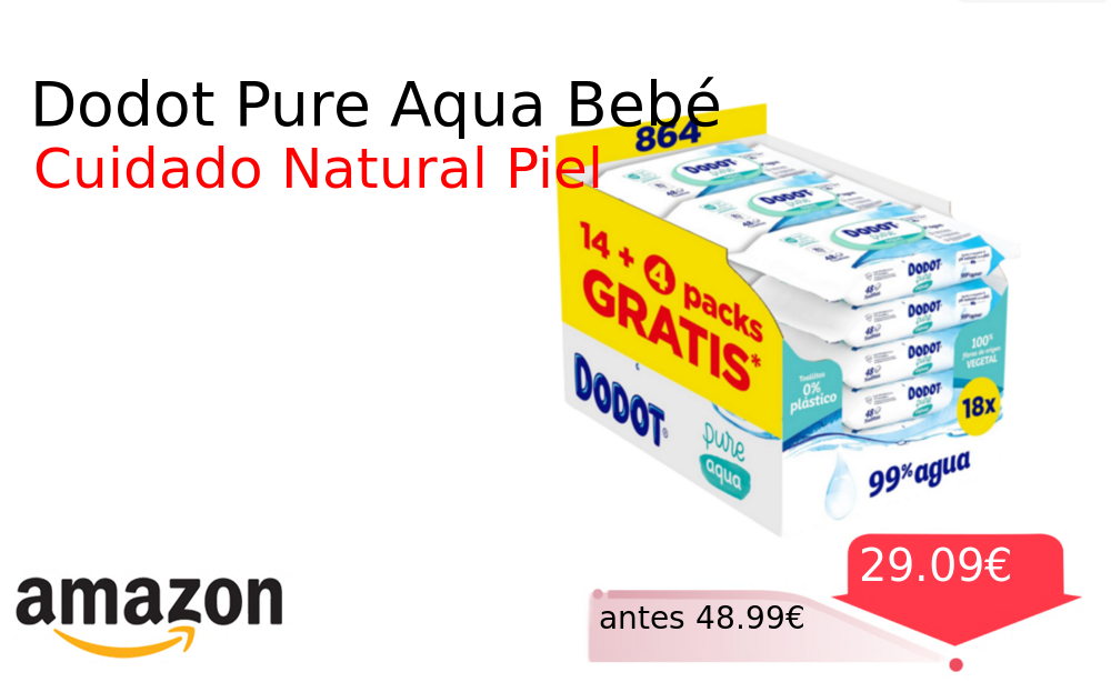 40% 📉 Vaya descuentazo‼‼ Dodot Pure Aqua Bebé❗️🆕 #Amazon 🇪🇸 📛Precio Ya 29.09€❗️ (PVP: +48.99€) ✨Toallitas para bebé con agua que ayudan a restaurar el pH natural de la piel Suave formulación sin plástico para máxima delicadeza en cada. cholloya.com/DODOT_PURE_AQUA