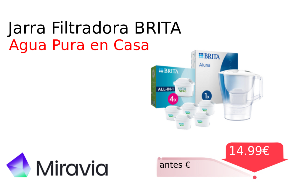 Buen Precio✨ Jarra Filtradora BRITA❗️🆕 #Miravia 📛Precio Ya 14.99€❗️ (PVP: +€) ✨Jarra filtrante BRITA con cinco filtros MAXTRA PRO Elimina cal cloro y metales del agua Diseño sostenible y apta para lavavajillas Indicador de cambio. cholloya.com/BRITA_JARRA_FIL