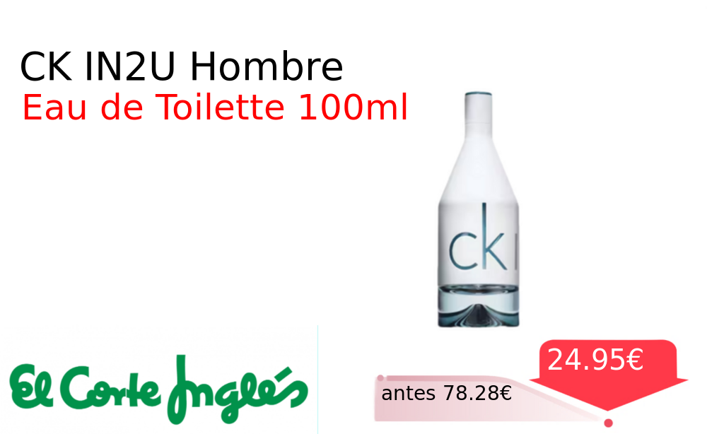 Mitad de precio✂️ CK IN2U Hombre❗️🆕 #Elcorteingles 📛Precio Ya 24.95€❗️ (PVP: +78.28€) ✨Fragancia masculina fresca y moderna con notas cítricas y amaderadas Ideal para el día a día proyecta confianza y estilo contemporáneo con su esencia. cholloya.com/CK_IN2U_HOMBRE