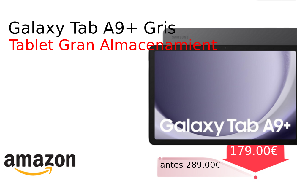 Más de un 30% 🚀 Galaxy Tab A9+ Gris❗️🆕 #Amazon 🇪🇸 📛Precio Ya 179.00€❗️ (PVP: +289.00€) ✨Tablet Android con pantalla de 11 pulgadas y almacenamiento de 128 GB Sonido envolvente 3D y acabado en gris oscuro Incluye garantía extendida. cholloya.com/TAB_A9PLUS_GRIS