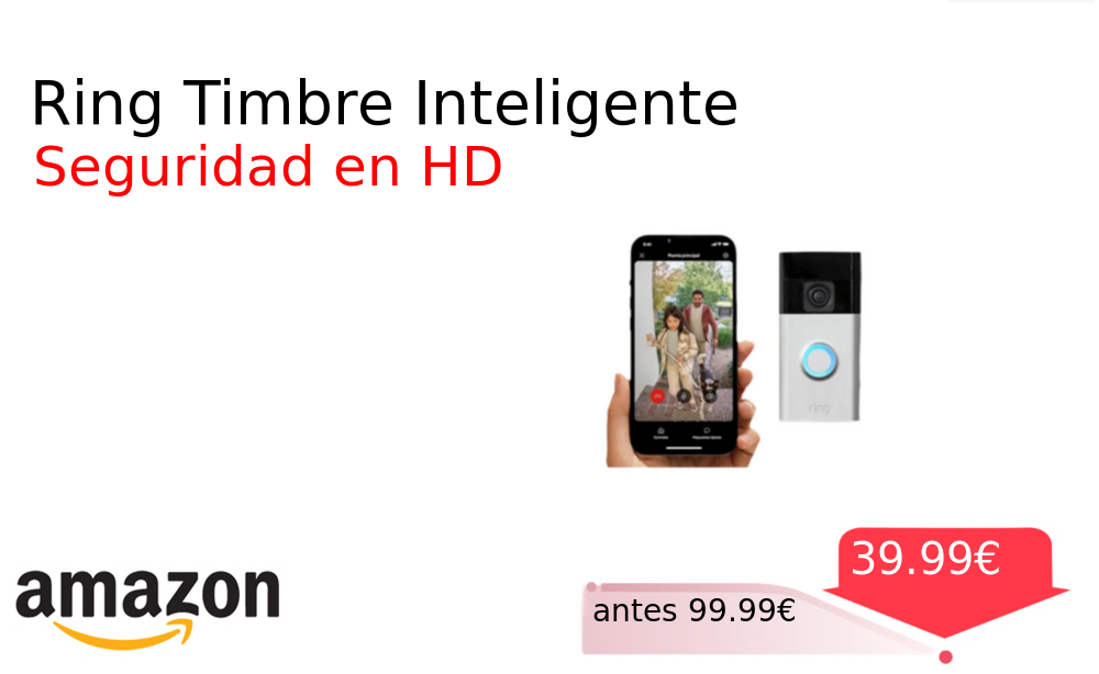 Mitad de precio✂️ Ring Timbre Inteligente❗️🆕 #Amazon 🇪🇸 📛Precio Ya 39.99€❗️ (PVP: +99.99€) ✨Videotimbre inteligente con batería integrada y vídeo HD de cuerpo entero Instalación rápida en cinco minutos y treinta días de protección gratuita. cholloya.com/RING_VIDEOTIMBR
