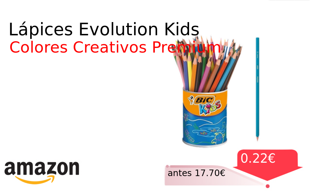 Mitad de precio✂️ Lápices Evolution Kids❗️🆕 #Amazon 🇪🇸 📛Precio Ya 0.22€❗️ (PVP: +17.70€) ✨Set completo de 60 lápices de colores vibrantes para artistas jóvenes Materiales de calidad superior que favorecen el desarrollo creativo infantil con trazos suaves. cholloya.com/BIC_KIDS_60COLO