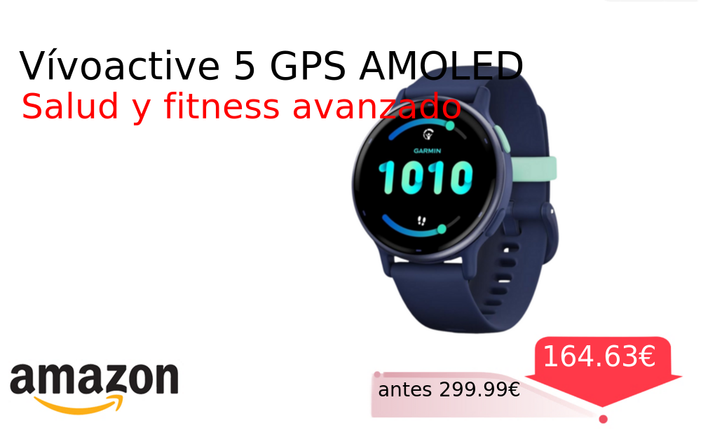 40% 📉 Vaya descuentazo‼‼ Vívoactive 5 GPS AMOLED❗️🆕 #Amazon 🇪🇸 📛Precio Ya 164.63€❗️ (PVP: +299.99€) ✨Smartwatch con GPS integrado y pantalla AMOLED brillante Monitoriza tu salud y actividad física con precisión Disfruta de una autonomía prolongada para el día. cholloya.com/VIVOACTIVE_5_GP
