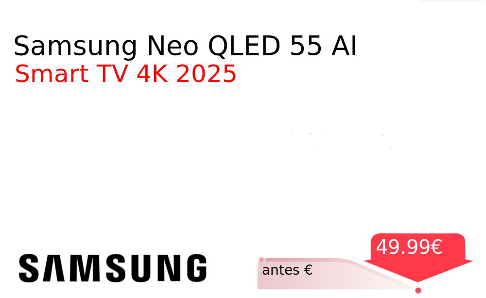 Buen Precio✨ Samsung Neo QLED 55 AI❗️🆕 #Samsung 📛Precio Ya 49.99€❗️ (PVP: +€) ✨Televisor Neo QLED de 55 pulgadas con resolución 4K Tecnología Samsung Vision AI optimiza imagen y sonido Eficiencia energética inteligente para un consumo responsable. cholloya.com/TV_SAMSUNG_QN74