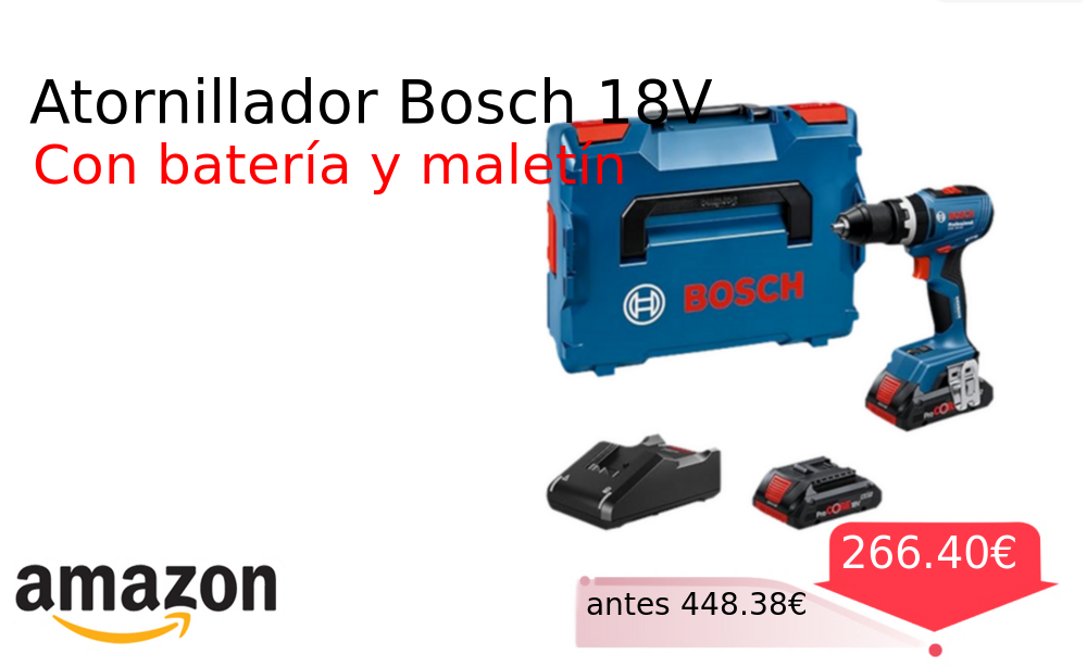 40% 📉 Vaya descuentazo‼‼ Atornillador Bosch 18V❗️🆕 #Amazon 🇪🇸 📛Precio Ya 266.40€❗️ (PVP: +448.38€) ✨Atornillador profesional con motor Brushless para mayor durabilidad y potencia Incluye dos baterías de alto rendimiento y maletín de transporte robusto L-BOXX. cholloya.com/BOSCH_GSB_18V65