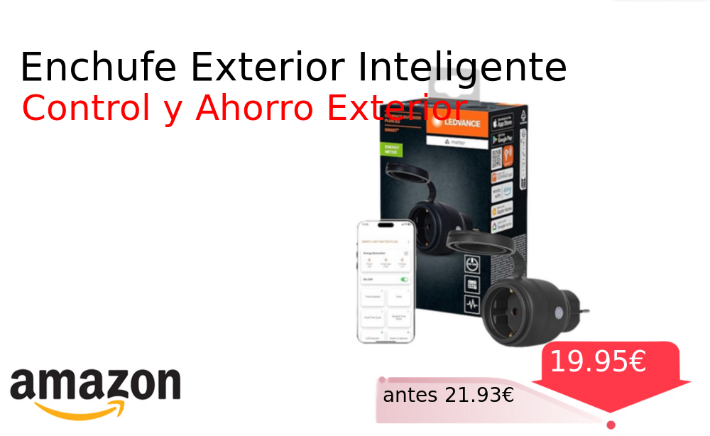 Buen Precio✨ Enchufe Exterior Inteligente❗️🆕 #Amazon 🇪🇸 📛Precio Ya 19.95€❗️ (PVP: +21.93€) ✨Enchufe exterior inteligente compacto con monitor de consumo energético Control total mediante Matter sobre WiFi y compatibilidad con los principales asistentes de voz del. cholloya.com/ENCHUFE_SMART_E