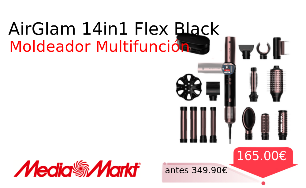 Mitad de precio✂️ AirGlam 14in1 Flex Black❗️🆕 #MediaMarkt 📛Precio Ya 165.00€❗️ (PVP: +349.90€) ✨Moldeador con 14 cabezales intercambiables y revestimiento cerámica-queratina Diseño ergonómico y pantalla digital para un control total y peinados personalizados. cholloya.com/CECOTEC_AIRGLAM