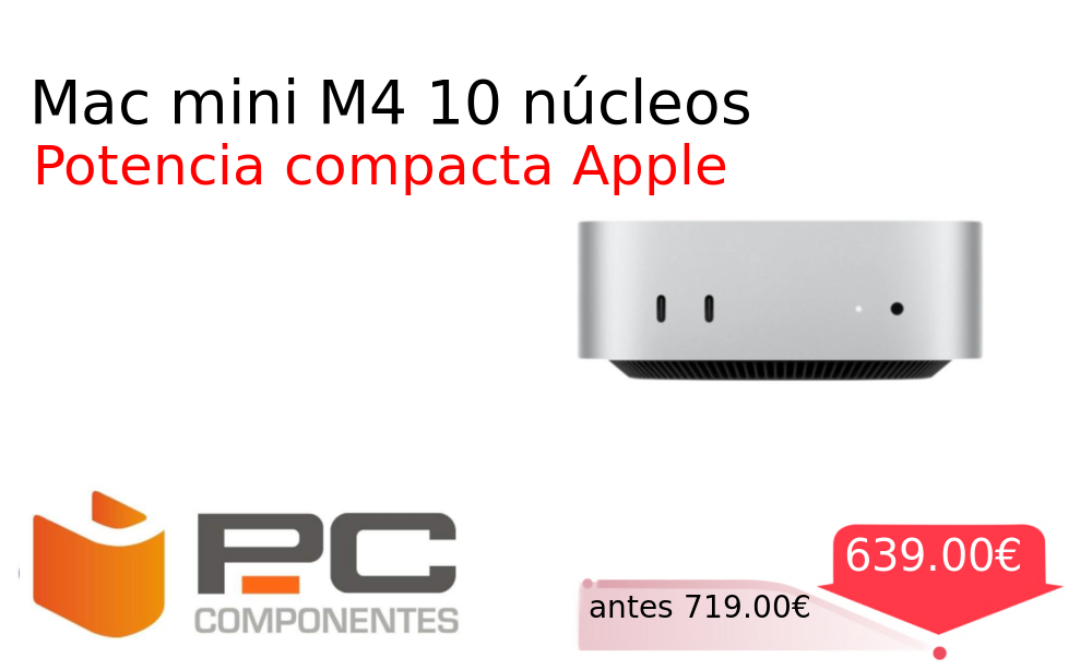 Buen Precio✨ Mac mini M4 10 núcleos❗️🆕 #PcComponentes 📛Precio Ya 639.00€❗️ (PVP: +719.00€) ✨Equipo compacto con procesador M4 de 10 núcleos 16 GB de memoria y almacenamiento SSD Rendimiento excepcional para trabajo creativo y multitarea en un. cholloya.com/MAC_MINI_M4