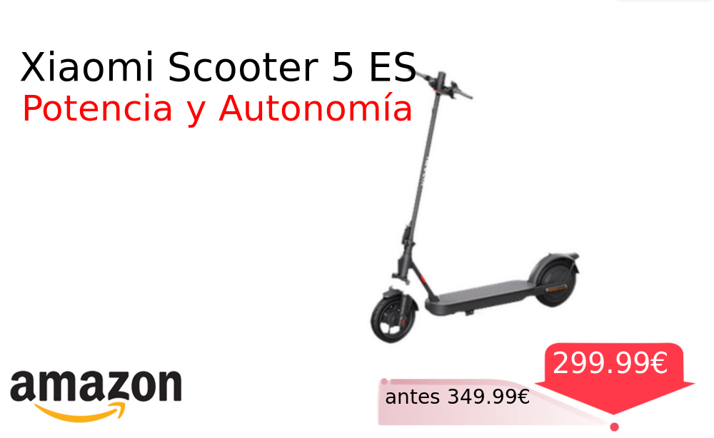 Buen Precio✨ Xiaomi Scooter 5 ES❗️🆕 #Amazon 🇪🇸 📛Precio Ya 299.99€❗️ (PVP: +349.99€) ✨Patinete eléctrico con potencia máxima de 1000W y autonomía extendida Ruedas grandes para mayor estabilidad y certificación DGT para circular legalmente en España. cholloya.com/XIAOMI_SCOOTER_