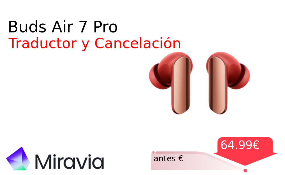 Buen Precio✨ Buds Air 7 Pro❗️🆕 #Miravia 📛Precio Ya 64.99€❗️ (PVP: +€) ✨Auriculares con traductor en vivo y cancelación de ruido de 53dB Diseño Aviatio en aluminio autonomía de 48 horas y resistencia IP55 para un. cholloya.com/REALME_BUDS_AIR