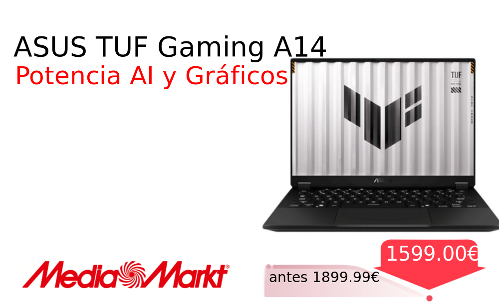 Buen Precio✨ ASUS TUF Gaming A14❗️🆕 #MediaMarkt 📛Precio Ya 1599.00€❗️ (PVP: +1899.99€) ✨Portátil gaming con procesador AMD Ryzen AI Max 392 y gráficos Radeon 8060S Cuenta con 64 GB de RAM 1 TB SSD y pantalla. cholloya.com/ASUS_TUF_A14