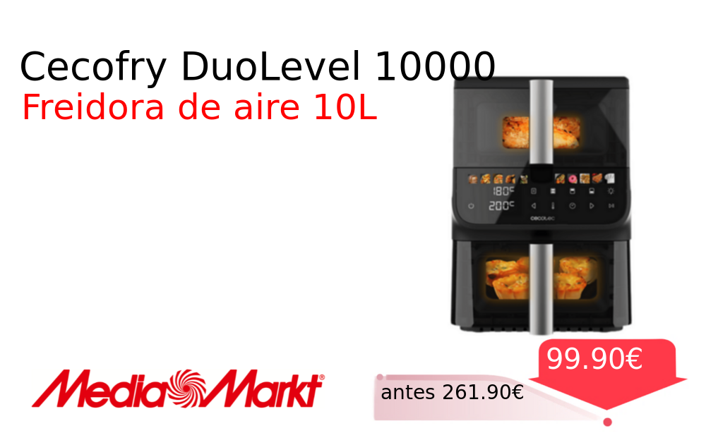 Mitad de precio✂️ Cecofry DuoLevel 10000❗️🆕 #MediaMarkt 📛Precio Ya 99.90€❗️ (PVP: +261.90€) ✨Cocina a dos niveles simultáneos con visión total Dos cubetas independientes para mayor versatilidad Resultados perfectos y fáciles con diez programas preestablecidos. cholloya.com/CECOTEC_DUOLEVE
