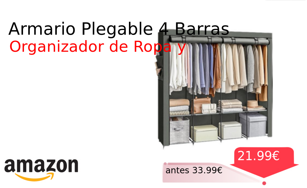 Más de un 30% 🚀 Armario Plegable 4 Barras❗️🆕 #Amazon 🇪🇸 📛Precio Ya 21.99€❗️ (PVP: +33.99€) ✨Armario plegable de tela con cuatro barras y estantes Incluye bolsillos laterales para un almacenamiento organizado y eficiente en cualquier habitación. cholloya.com/ARMARIO_PLEGABL