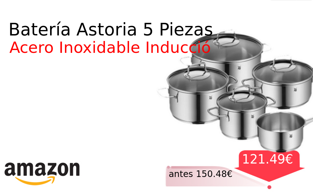 Buen Precio✨ Batería Astoria 5 Piezas❗️🆕 #Amazon 🇪🇸 📛Precio Ya 121.49€❗️ (PVP: +150.48€) ✨Batería de cocina en acero inoxidable Cromargan cinco piezas con tapas Ideal para inducción diseño duradero y funcional para preparar tus platos favoritos. cholloya.com/WMF_ASTORIA_5P