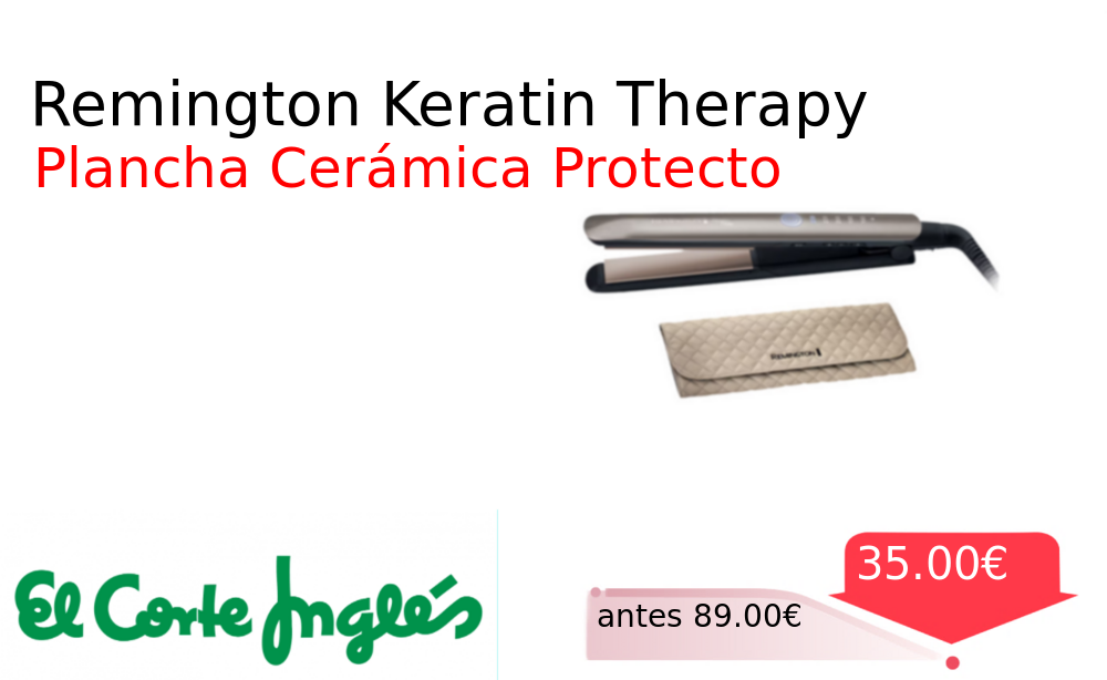 Mitad de precio✂️ Remington Keratin Therapy❗️🆕 #Elcorteingles 📛Precio Ya 35.00€❗️ (PVP: +89.00€) ✨Plancha con revestimiento cerámico y tecnología protectora de queratina Su sensor exclusivo evita daños por calor cuidando el cabello durante el peinado. cholloya.com/REMINGTON_KERAT