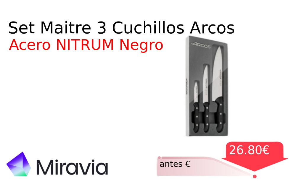 Buen Precio✨ Set Maitre 3 Cuchillos Arcos❗️🆕 #Miravia 📛Precio Ya 26.80€❗️ (PVP: +€) ✨Set de tres cuchillos esenciales con hoja de acero NITRUM para máxima durabilidad Mangos ergonómicos de polipropileno garantizan un agarre seguro y cómodo. cholloya.com/ARCOS_MAITRE_SE