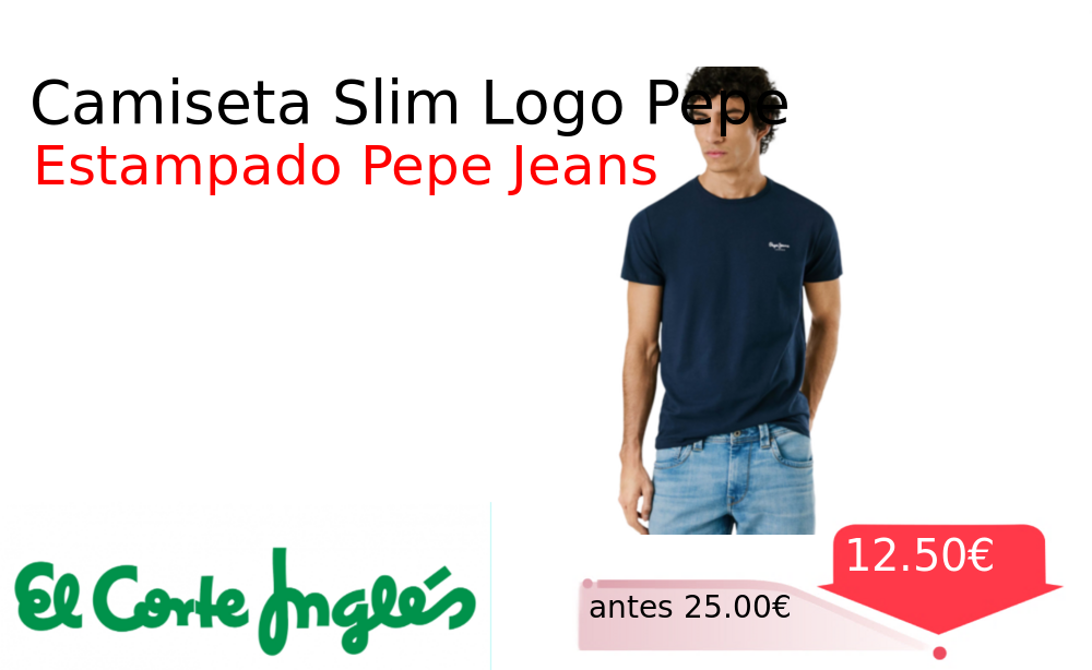 Mitad de precio✂️ Camiseta Slim Logo Pepe❗️🆕 #Elcorteingles 📛Precio Ya 12.50€❗️ (PVP: +25.00€) ✨Camiseta de lycra elástica con corte slim Cuello redondo y manga corta Lleva el logo PEPEJEANS estampado y un bordado en la manga. cholloya.com/CAMISETA_PEPEJE